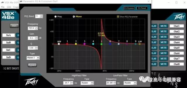 笔者自身不太建议应用延迟法进行效准工作的原因在于,简单的分频系统也许可行,但这似乎已经改变了一个整体声源的到达时间这样一个客观规律;而更复杂的分频系统、多声源的扩声系统,多分频与多声源系统兼有的扩声方案中,延迟法似乎早已不切实际。所以相位滤波器是一个非常有用的滤波功能类型,它可以通过在需要调节相位的频点设置滤波,在不改变频响的情况下,打断原有的线性相位曲线,在工程师给出的既定频带范围内反转该频段相位函数。通过Q值的调解,我们可以在测试软件中时时地发现原始线性的相位曲线发生着分离和变化,其斜率与带宽更加地接近参考的对比曲线,经过精细地调试,最终与原对比曲线在有效区域范围内做到完全重合。(通常选用相位斜率较缓的曲线进行修正效准,效准参考曲线以较陡的一方作为标准依据)。 所以,一套扩声系统无论是否经过效准,各频段声信号都能够各行其道,都能够服务于人耳,但是于听感上,它们能不能融汇成一个整体,能不能根据设计师的方案理念实现需求,能不能更真实地还原音源信号呢,这个程度的多少,取决于我们是否去做这件事,是否用对了科学的办法去做,同时还取决于我们有什么样的利器去做这件事。