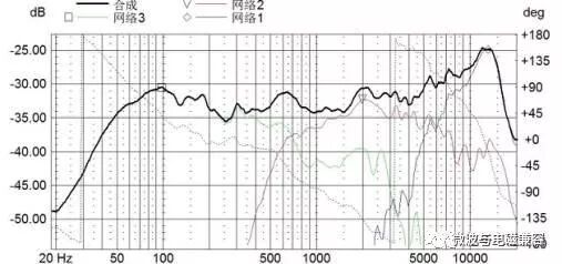 为了让一个初始声源信号在扩声方案中得到最真实的还原,而不受到交叉频段的干涉或缺失或突兀,需要假设的是,这套分频系统的相位是得到了有效衔接的。根据声压级叠加公式Lp=20log(pe/p0)可知当声压增加1倍时,声压级增加6dB(注意:不同单元间的叠加不能简单与功率加倍混为一谈)。因此,在暂不考虑相位因素的前提下,分频段的交叉频点应设置在-6dB位置左右最为合理,这样耦合出来的频响才会在最大程度上与其余频段保持均衡。
