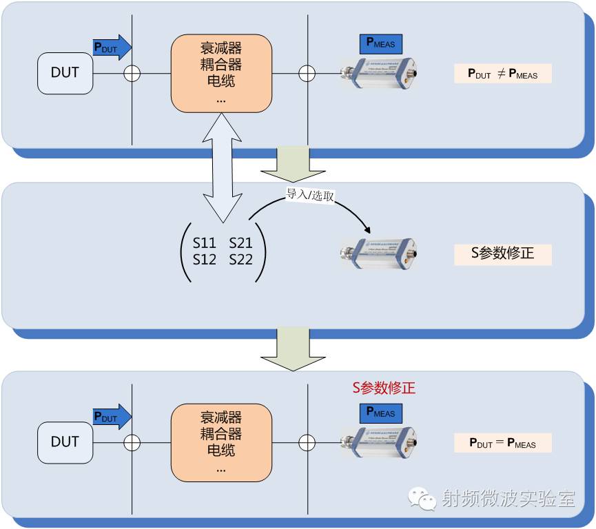 在大功率(可能高达几十kW)测试场合,通常需要外接衰减器或定向耦合器。目前较先进的功率探头可以进行S参数修正,也就是把外接装置的全频段S参数内置在功率探头,实现每个频点的测试值自动修正。 功率探头内置参数修正,导入外部衰减器S参数数据,进行大功率信号精确功率测试: 4. 测量数据的采集、传输和显示现代功率探头能够完成所有测量功率,并发送出测量数值。数据传输接口可以是专用主机接口,也可以是通用USB接口或网口。因此,除了功率计仪器,可使用其它带有操作系统的设备,如电脑、其它仪器甚至手机。如果采用网口,可以用电脑通过TCP/IP协议远程访问功率探头。
